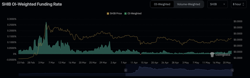 De futures open interest van SHIB vertoont sinds het begin van de maand een opwaartse trend. Bij het schrijven van dit artikel was de futures open interest van de meme coin $89 miljoen, de hoogste stand sinds 4 april.