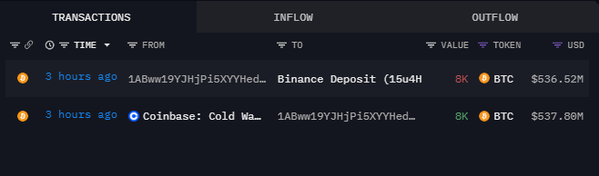 Een Bitcoin wallet die al jaren niets heeft gedaan, is weer opgedoken en heeft 8.000 BTC, met een waarde van ongeveer $535,64 miljoen, verplaatst.