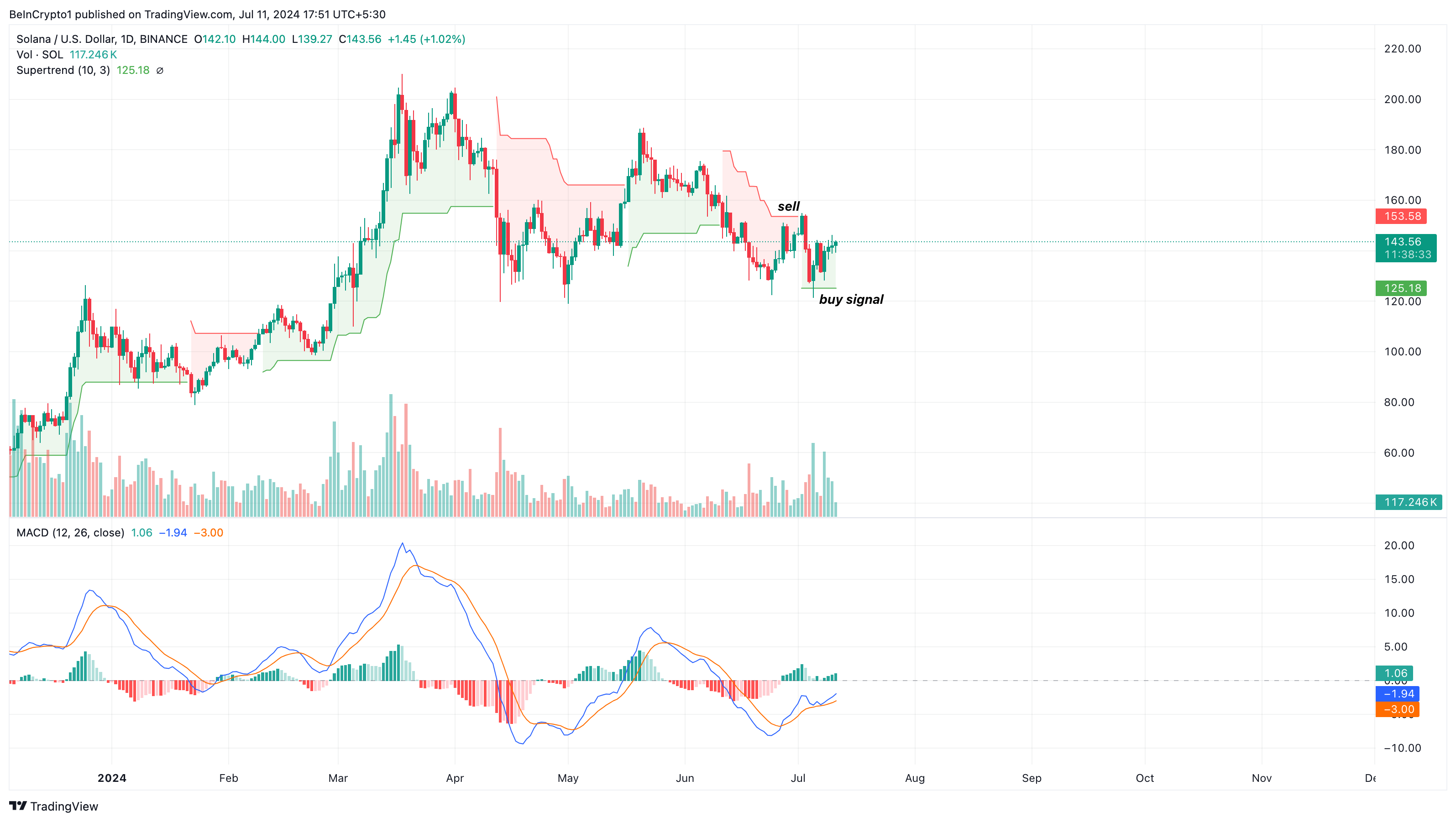 Op het moment van schrijven genereert de Supertrend een koopsignaal op $125,18. Deze trend lijkt te zijn gevalideerd nu de SOL-waarde hoger staat.