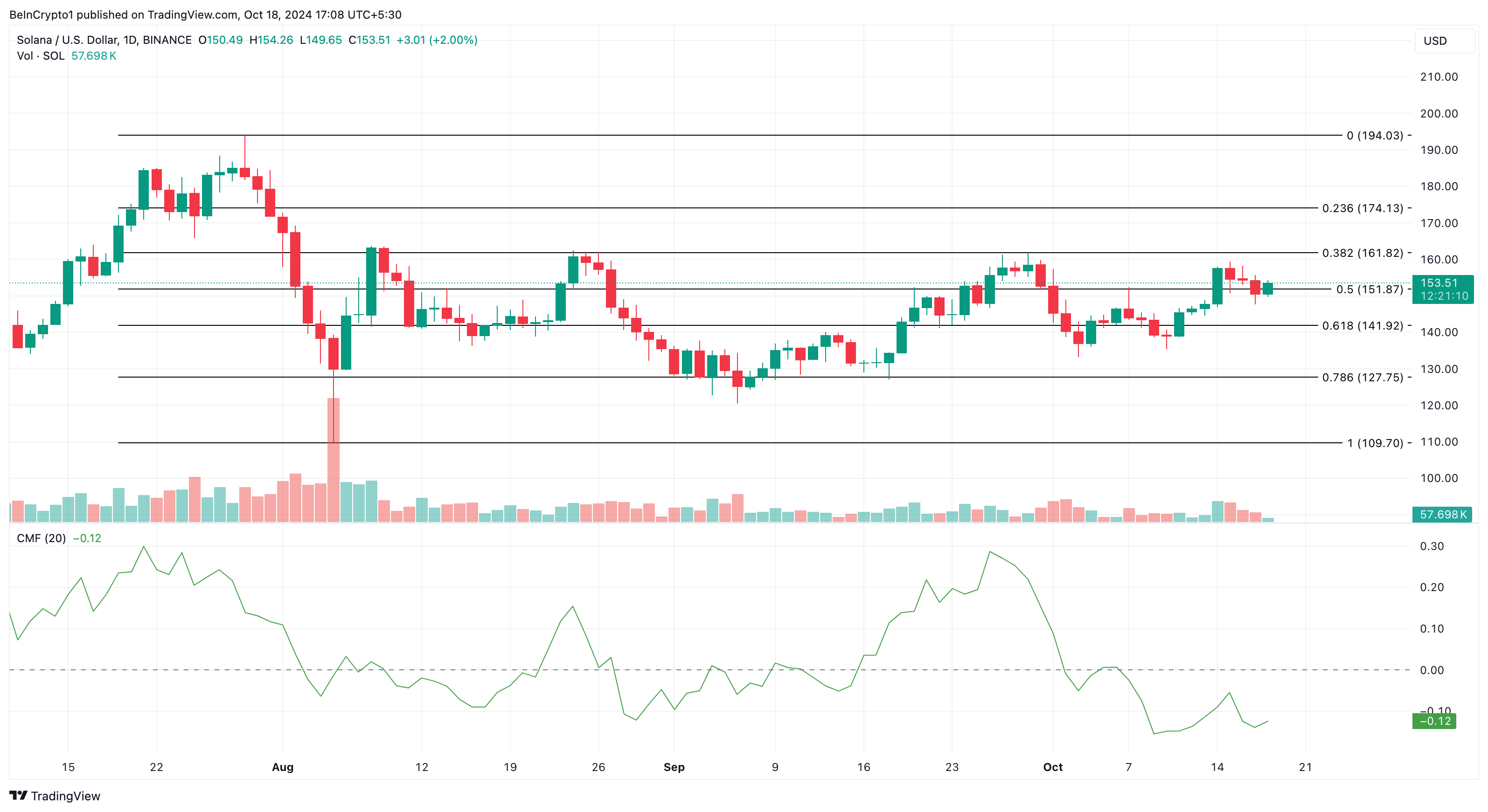 Vanwege de huidige toestand van de CMF, kan de Solana koers dalen naar $127,75. Maar als de OI aanzienlijk toeneemt voordat dit kwartaal eindigt, komt de verwachting mogelijk niet uit. In plaats daarvan zou SOL kunnen stijgen boven de $200.