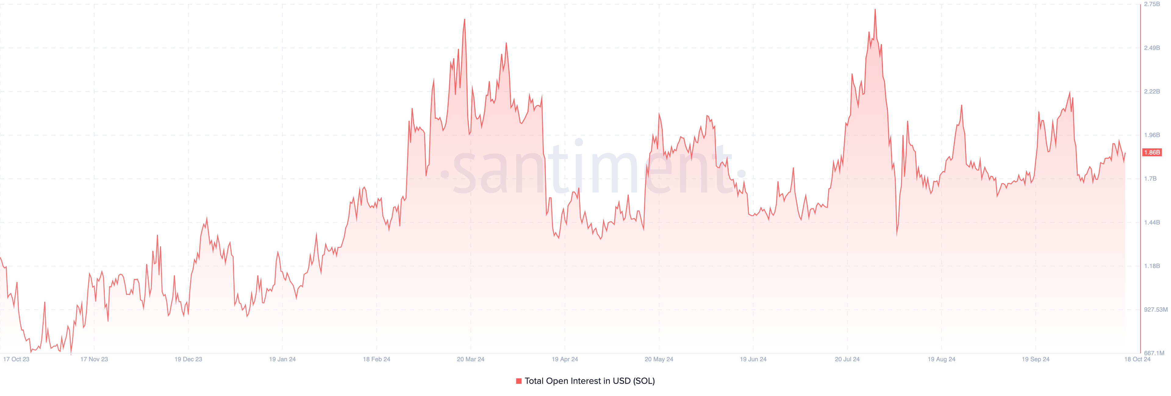 Een reden waarom SOL $208 bereikte was zijn open interest (OI), wat een indicator is van speculatieve activiteit. Op dat moment steeg de OI naar $2,65 miljard. Open interest verwijst naar de som van de waarde van alle openstaande contracten op de markt.