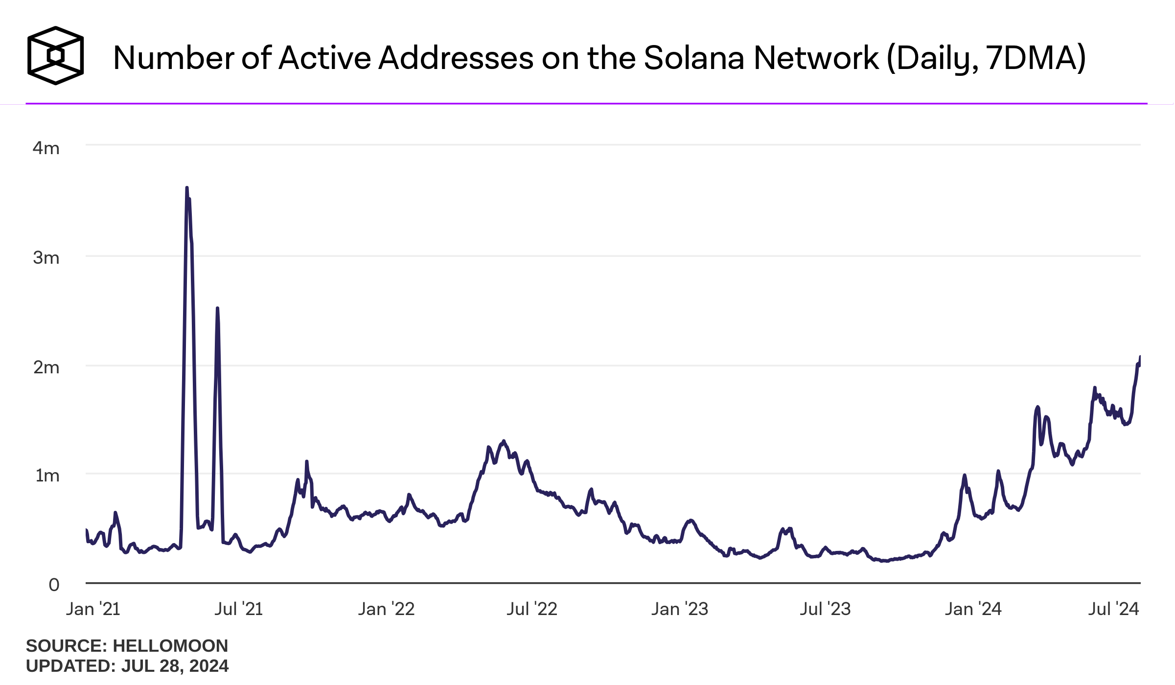 In plaats daarvan staat een belangrijke metriek van het Solana-ecosysteem op het punt zijn hoogste niveau in drie jaar te bereiken. Deze metriek betreft de actieve adressen, die de participatiegraad van gebruikers op het netwerk meten.