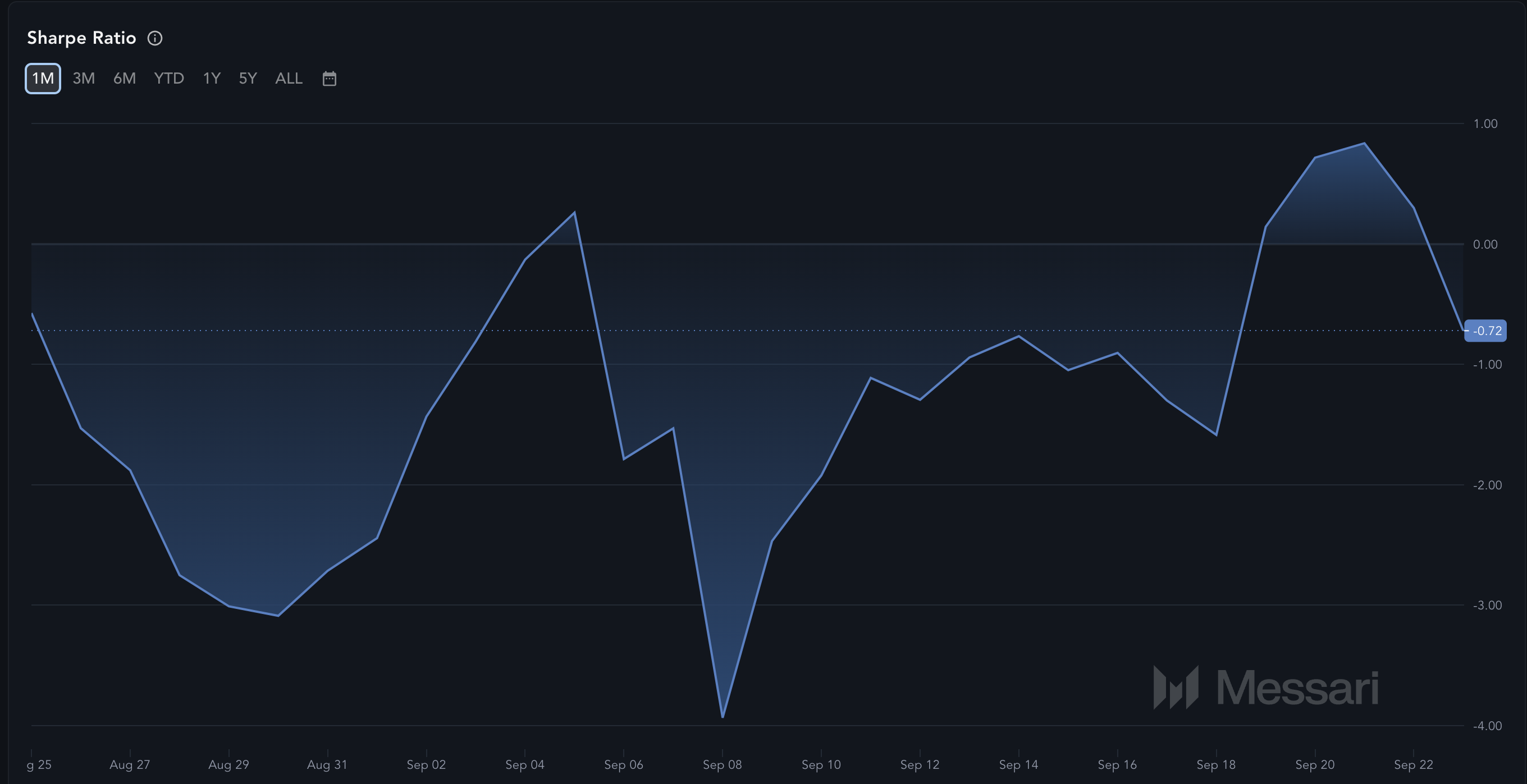 Een hogere Sharpe-ratio wijst op een betere risico-beloning balans, maar de Sharpe-ratio van Solana is gedaald naar -0,72, volgens gegevens van Messari. Deze daling suggereert dat de potentiële rendementen de risico’s van kopen tegen de huidige prijs mogelijk niet rechtvaardigen.
