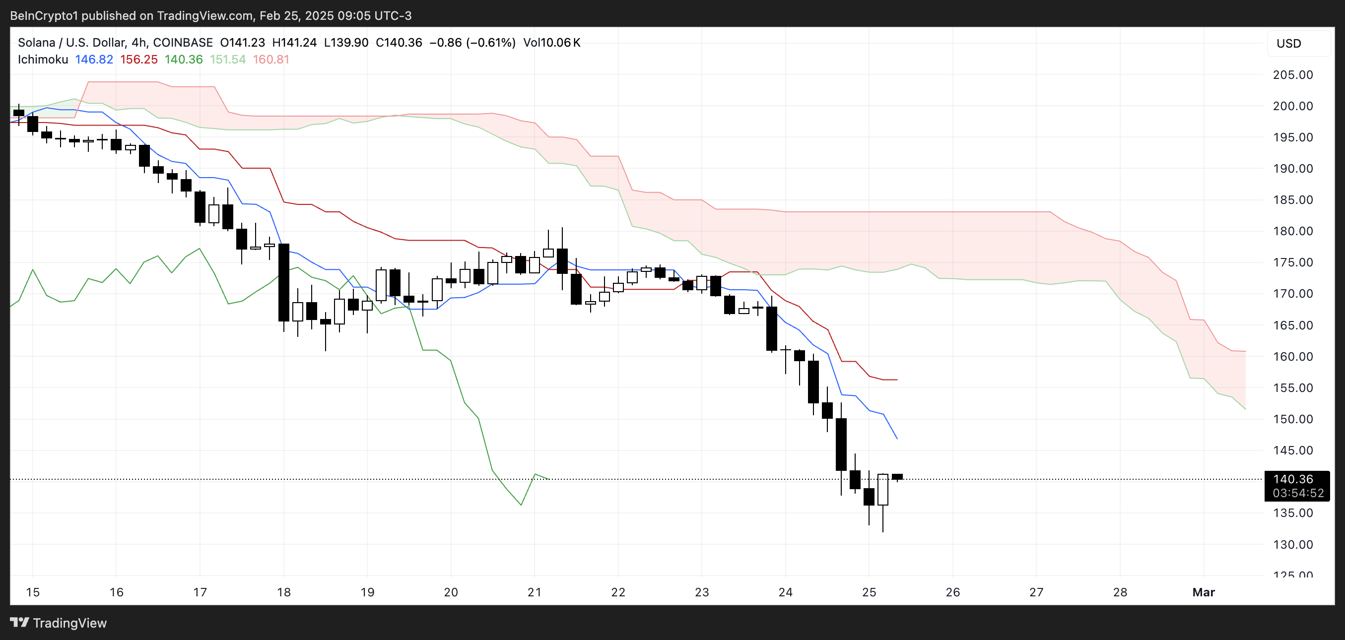 SponsoredSolana Ichimoku Cloud toont sterke bearish setup