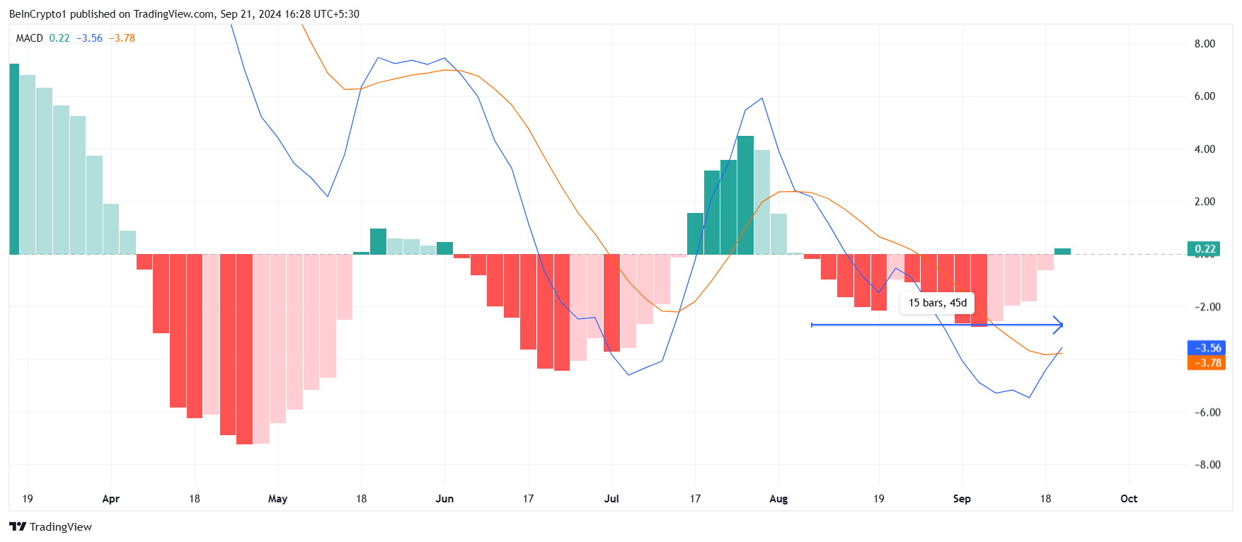 Daarnaast lijkt het macromomentum van Solana een bullish richting in te slaan. De Moving Average Convergence Divergence (MACD) indicator liet onlangs voor het eerst in meer dan 45 dagen een bullish crossover zien, wat erop wijst dat de langdurige bearish periode mogelijk ten einde komt. De cryptocurrency stond meer dan anderhalve maand onder neerwaartse druk, maar deze technische indicator suggereert nu een mogelijke trendomkeer.