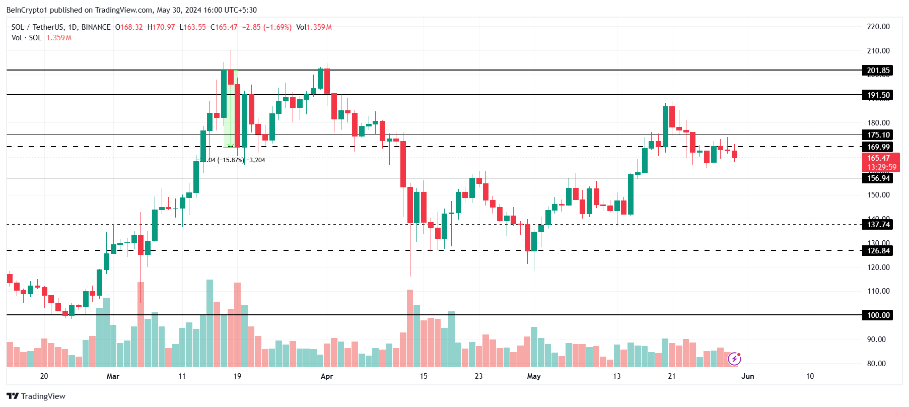 Het optimisme zou uiteindelijk kunnen leiden tot een breakout boven $169, waardoor een stijging naar $200 mogelijk wordt en de bearish Solana verwachting wordt ontkracht.