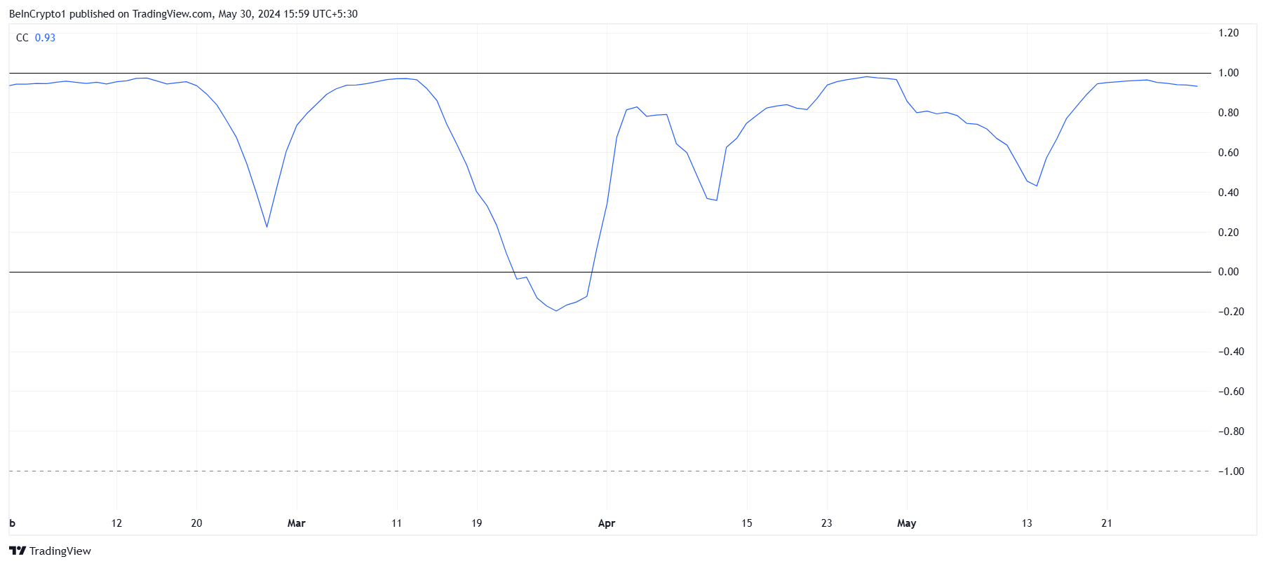 Bovendien deelt altcoin een zeer high correlatie van 0,93 met Bitcoin. Dit is zowel een voordeel als een nadeel voor SOL. Want als ‘s werelds grootste cryptomunt een rally zou markeren, zou de Solana koers profiteren door de signalen te volgen.
