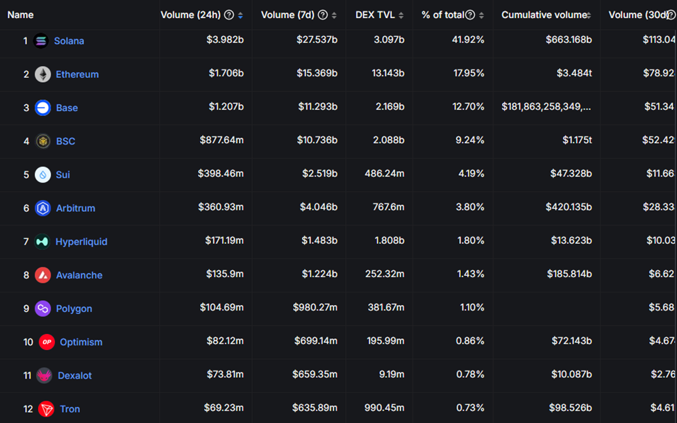 Ondertussen blijft Solana een dominante kracht in gedecentraliseerde financiën (DeFi), en overtreft Ethereum in handelsvolume op zijn gedecentraliseerde exchanges (DEX’s). Volgens DefiLlama registreerden Solana’s DEX’s vorige maand meer dan $113 miljard in handelsvolume, vergeleken met Ethereum’s $78,9 miljard.