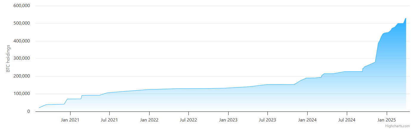 Sinds Michael Saylor Strategy (voorheen MicroStrategy) de opdracht gaf om Bitcoin te kopen, is het een van de grootste BTC-houders ter wereld geworden. Tot nu toe is het een grote koper in 2025 geweest, met de aankoop van ongeveer $2 miljard aan Bitcoin bij twee gelegenheden.