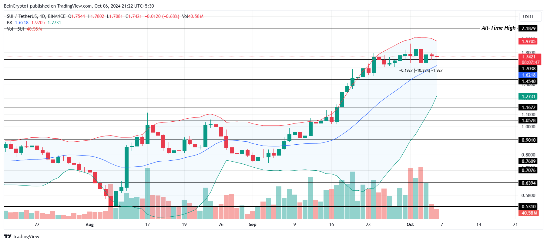 Als de bredere markt echter bullish momentum ontwikkelt en het huidige bearish sentiment weet te doorbreken, kan SUI stijgen naar $2,18. Een doorbraak van dit niveau zou de bearish SUI verwachting ongeldig maken en de weg vrijmaken om een nieuwe all-time high te bereiken.