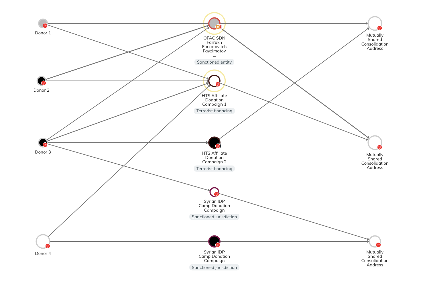 Echter, HTS heeft een kleinere rol gespeeld in deze crypto-wervingsactiviteit, hoewel het dit al sinds minstens 2021 doet. Volgens de gegevens van Chainalysis gebruikte HTS een geavanceerd witwasplan dat het moeilijk maakte om het exacte bedrag aan ontvangen fondsen te traceren.