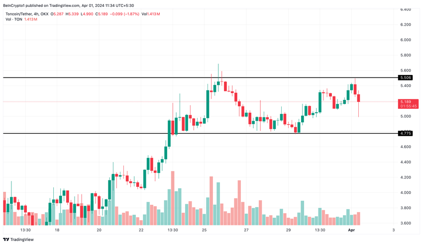 Toncoin is de 11e grootste cryptocurrency op basis van marktkapitalisatie, wat de koersvolatiliteit aantoonde. Na het bereiken van een all-time high in maart, consolideert TON tussen $ 5,50 en $ 4,77. Een breakout boven $5,50 met een sterk volume zou kunnen wijzen op een voortzetting van de uptrend.
