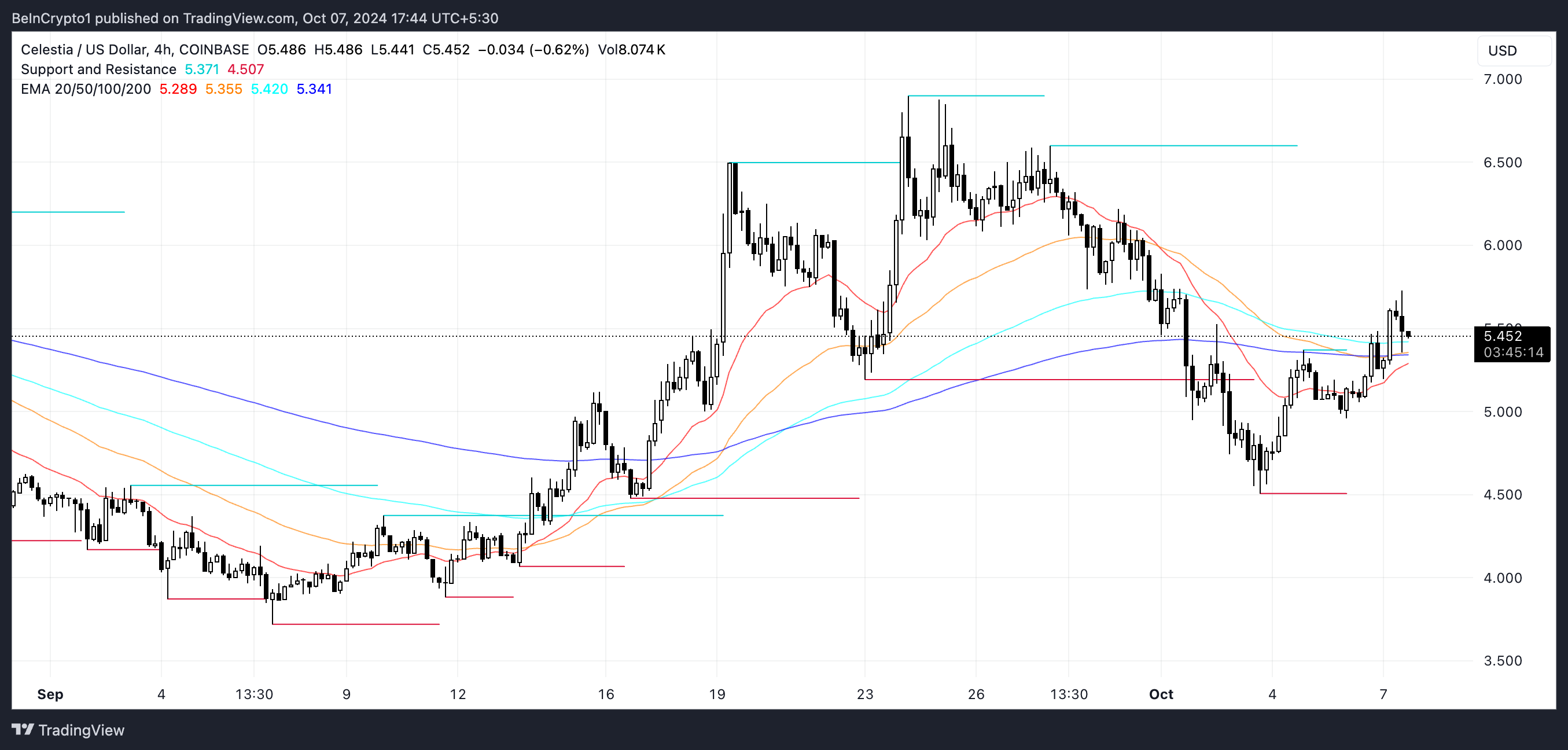 TIA wint aan momentum zonder het overbought-gebied te betreden, wat ruimte voor verdere groei biedt. Bovendien tonen de EMA-lijnen momenteel een neutrale houding. Naarmate de marktomstandigheden veranderen, is het belangrijk om deze indicatoren nauwlettend in de gaten te houden om te bepalen of TIA zijn recente winsten kan behouden.
