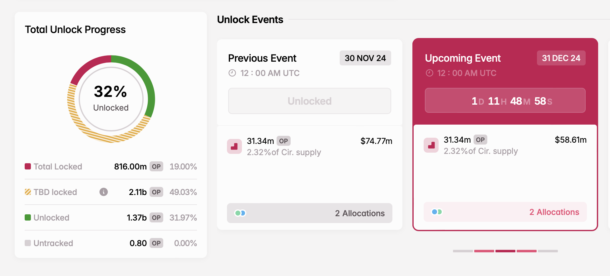 - Aantal tokens ontgrendeld: 31,34 miljoen OP