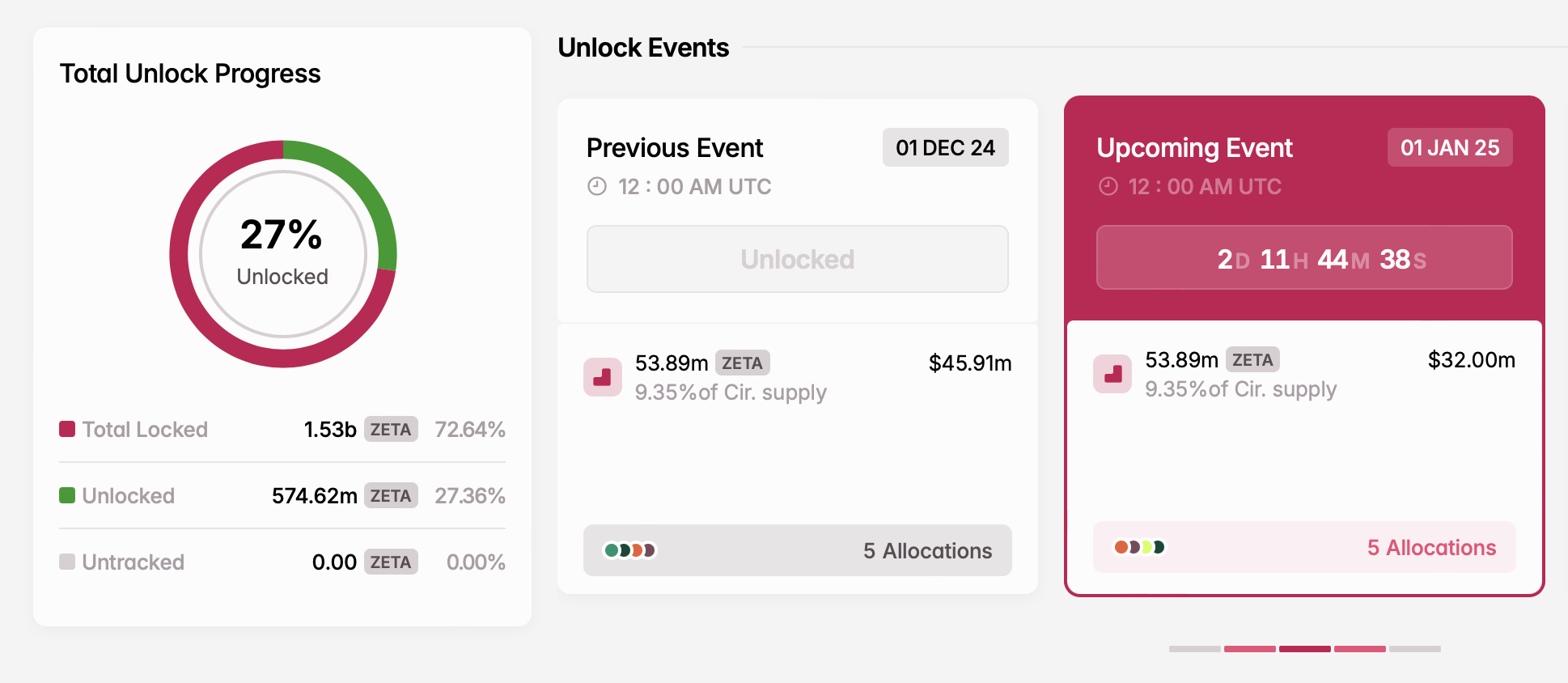 - Aantal tokens ontgrendeld: 53,89 miljoen ZETA