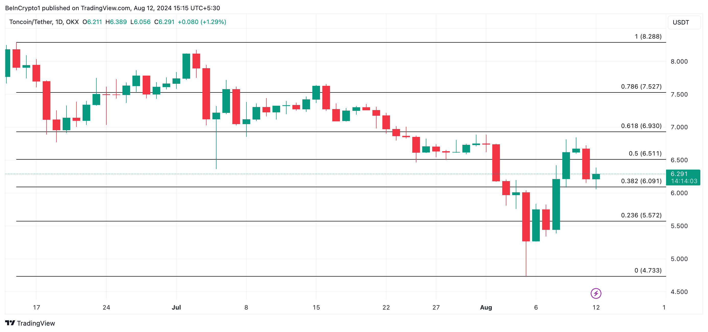 Echter, als TON een toename in vraag ziet, kan zijn koers stijgen naar $6,51, waardoor sommige shortposities worden geliquideerd