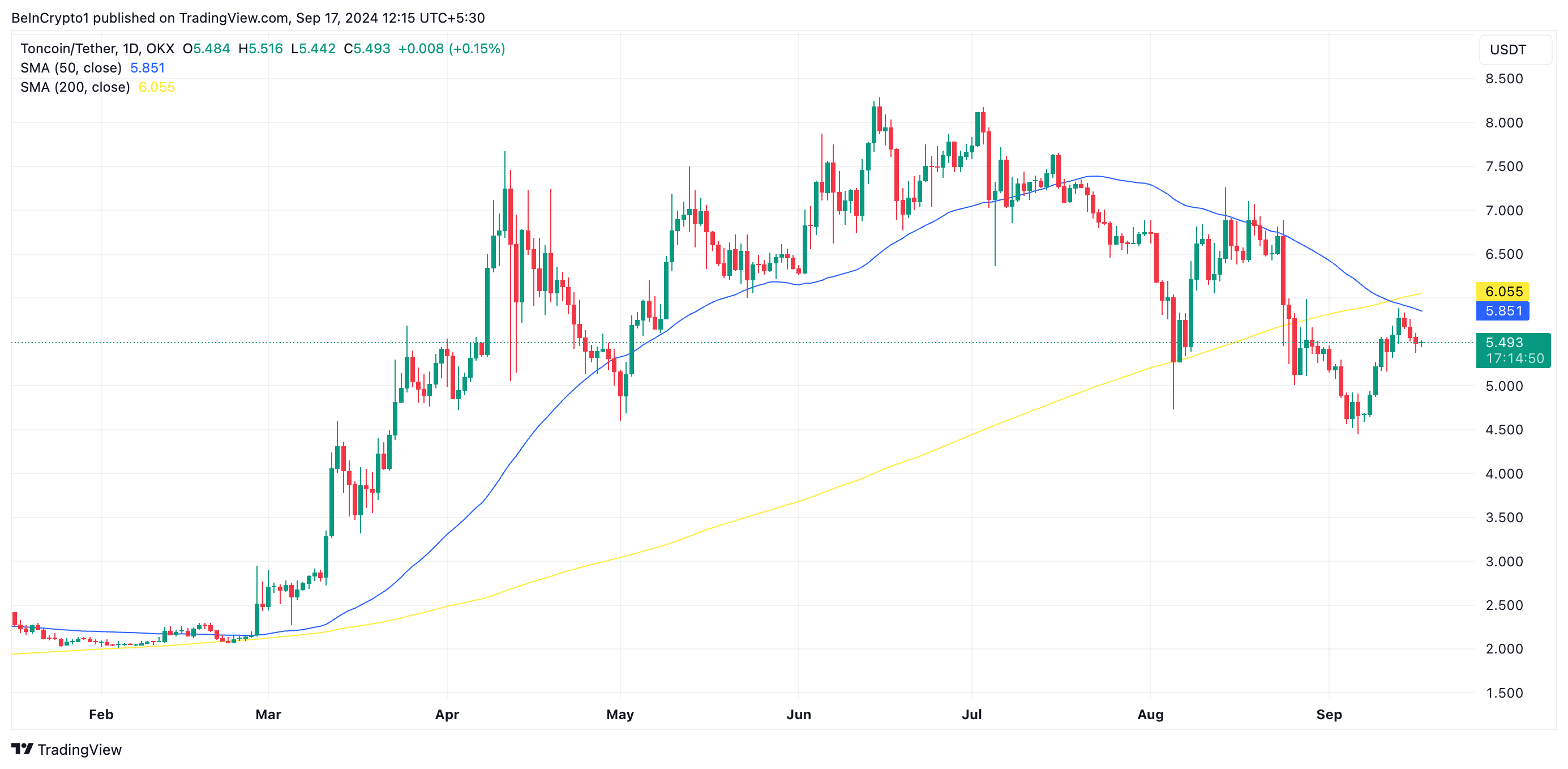 Death Cross brengt Toncoin in gevaar