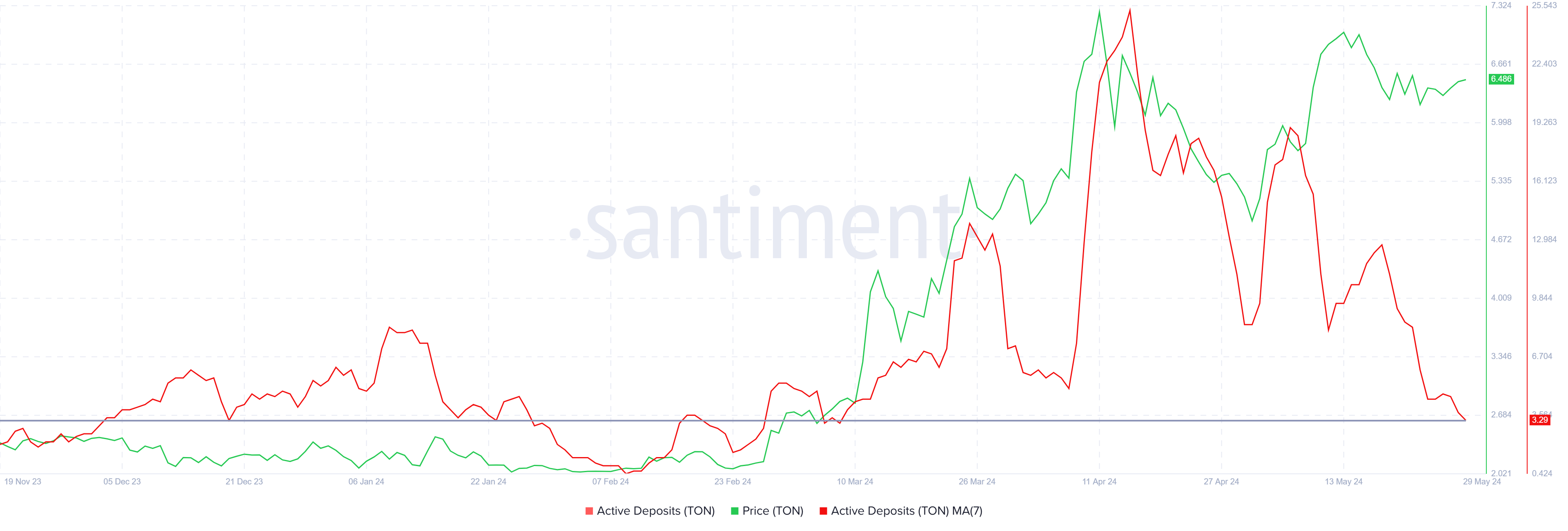 TON holders staan echter niet te springen om te verkopen, omdat de actieve deposito’s een 2-maandelijkse low hebben bereikt. Dit laat zien dat ze groei verwachten in de komende dagen.