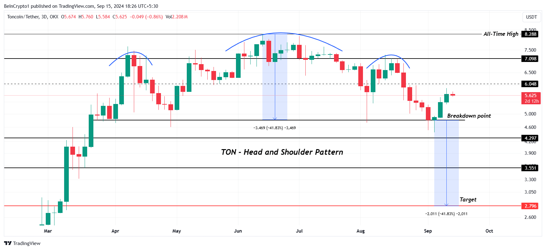 Echter, als het niet lukt om het niveau van $6,04 terug te winnen, kan dit leiden tot een terugval naar $4,80, het breekpunt. Mocht Toncoin door deze steun zakken, dan kan het dalen naar $4,29, wat de huidige bullish verwachting zou ontkrachten en extra neerwaartse druk op de markt zou leggen.