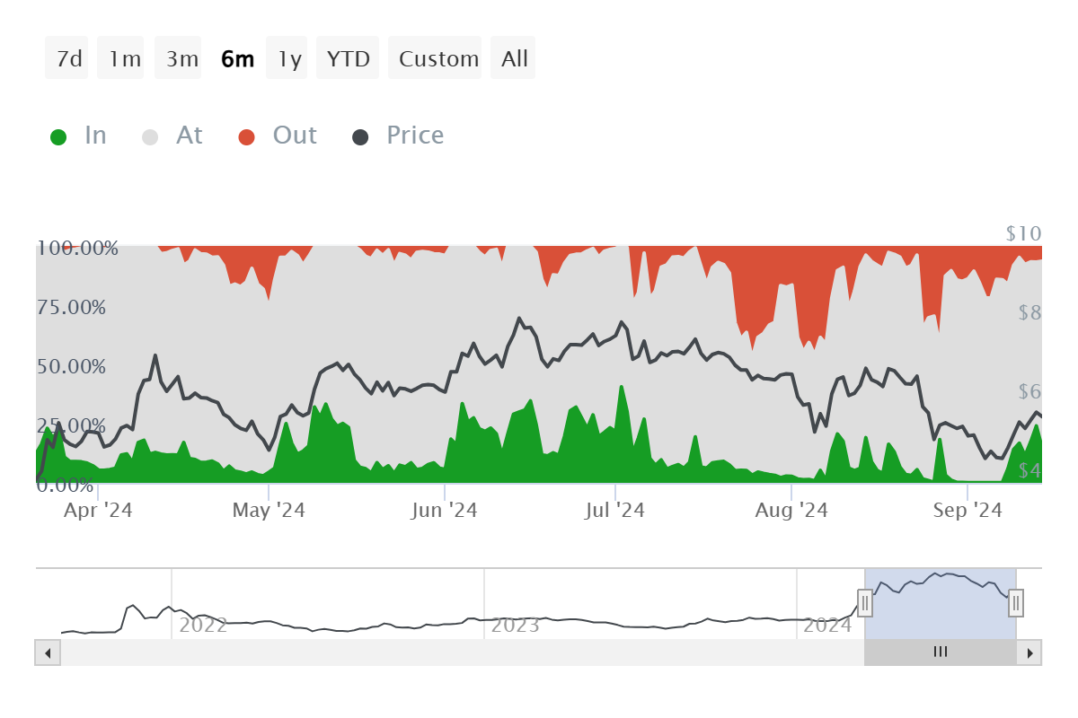 Een percentage boven de 25% zou gewoonlijk wijzen op bearish momentum, aangezien verhoogde verkoop de koers naar beneden zou kunnen drijven. Gelukkig is dat scenario op dit moment niet aan de orde, waardoor Toncoin wat ruimte krijgt om te herstellen. Voor nu suggereert het voorzichtige optimisme van de markt dat verdere koerswinsten binnen bereik kunnen zijn, ervan uitgaande dat andere factoren gunstig uitlijnen.