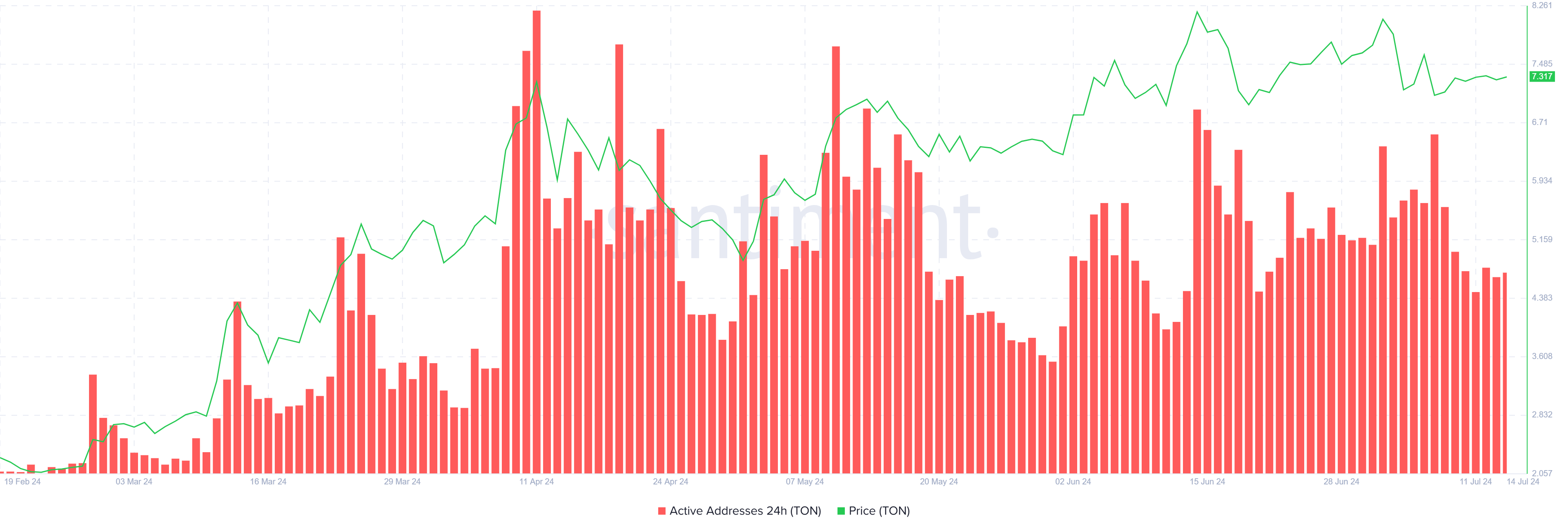 Investeerders hoopten er echter op en werkten er ook aan om het te laten gebeuren. De actieve adressen liggen momenteel gemiddeld op hetzelfde niveau als toen TON zijn recente ATH markeerde. Dit betekent dat de overtuiging om de gebeurtenissen te herhalen nog steeds high is.