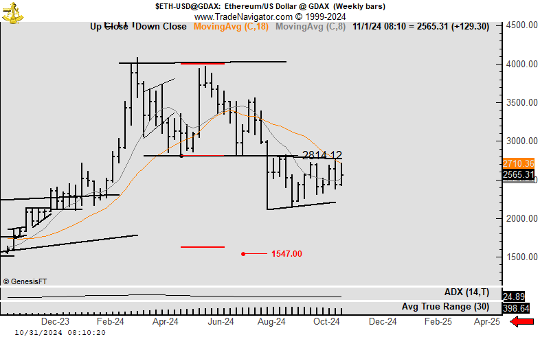 “ETH gaat niet ten onder. ETH / BTC doet wat het altijd doet. Ik denk dat ETH/BTC dit kwartaal een dieptepunt bereikt en in 2025 stijgt. Zodra ETH/BTC de 50D SMA passeert, is het dieptepunt bereikt volgens mij. Er is nog steeds een risico dat ETH/USD in nov/dec nog een keer daalt, maar hedgen is zinvol,” zei Cowen.