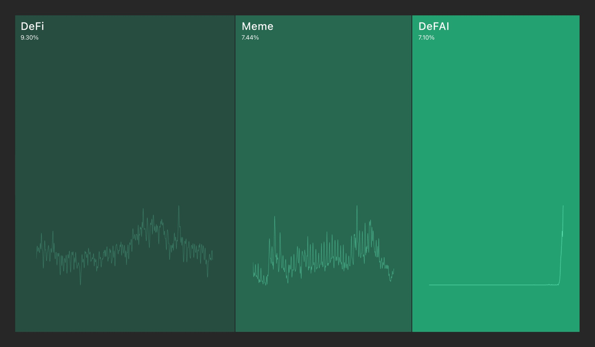 Crypto narratives ondergaan deze week grote verschuivingen, met AI-tokens, Real-World Assets (RWA) en meme coins die allemaal aanzienlijke correcties zien. De AI-sector, ooit een topcategorie, heeft zijn marktkapitalisatie met 42% zien dalen in de afgelopen maand, met grote tokens zoals FET en RENDER die hun verliezen uitbreiden.