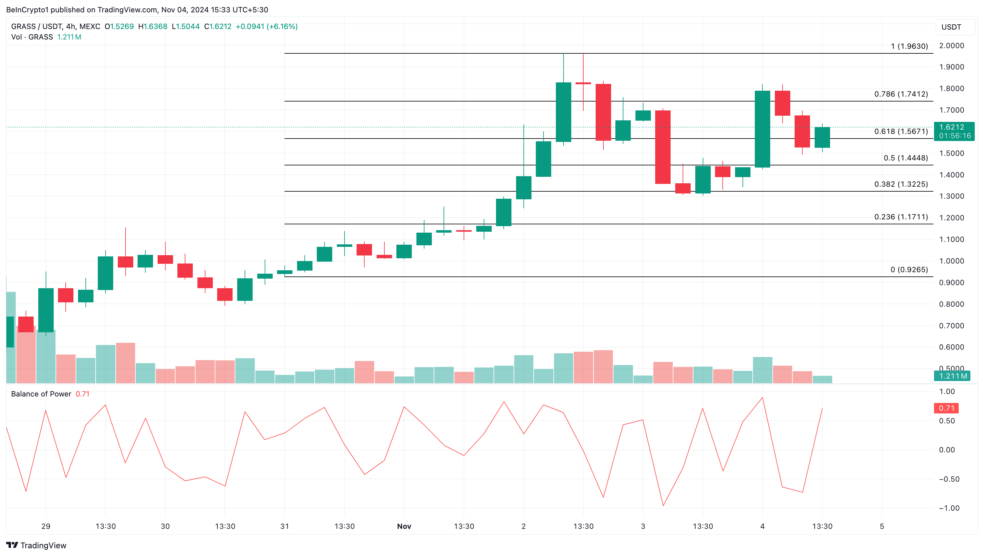 Maar in dit geval steeg de BoP, wat aangeeft dat de kracht van de kopers die van de verkopers heeft overtroffen. Als dit zo doorgaat, dan kan de koers van GRASS stijgen tot wel $1,96.