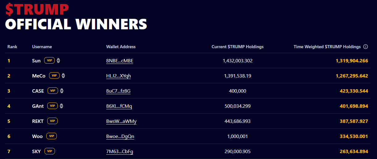 Justin Sun presenteerde zichzelf als de grootste houder van de TRUMP token. Dit sluit aan bij een recent BeInCrypto-rapport, dat aangaf dat Sun’s HTX cold storage wallet de eerste plaats inneemt op het TRUMP-leaderboard.