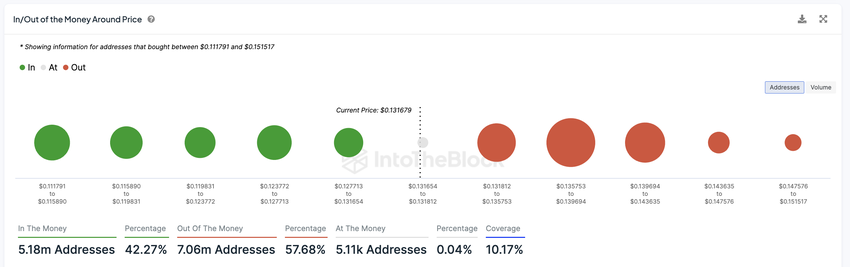 In het geval van TRX laat de IOMAP grafiek sterke weerstanden zien, de eerste op $0,1318 en een grotere op $0,135.