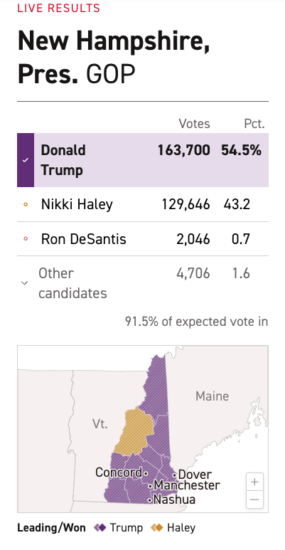 De overwinning betekent dat Trump een sterke start heeft gemaakt om de Republikeinse nominatie voor de algemene verkiezingen in november veilig te stellen. Hij was zelfverzekerd in een pre-verkiezingstoespraak op maandag.