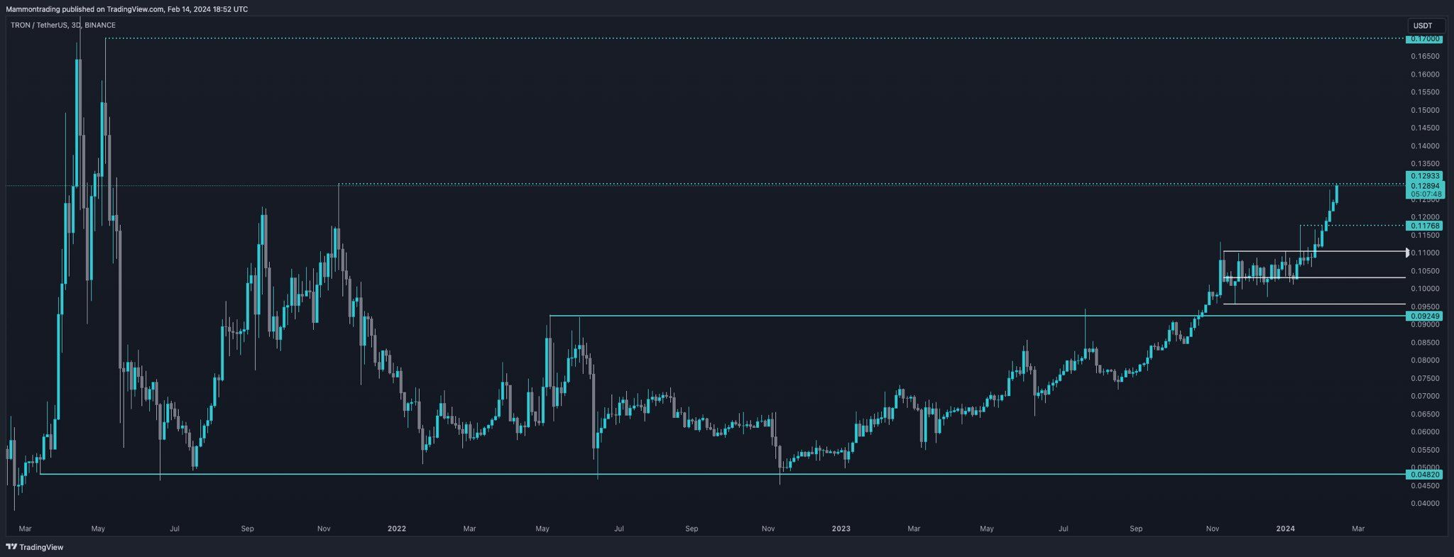 MammonnTrading tweette een TRX koersgrafiek en zei dat het een van de best uitziende cryptocurrencies is.