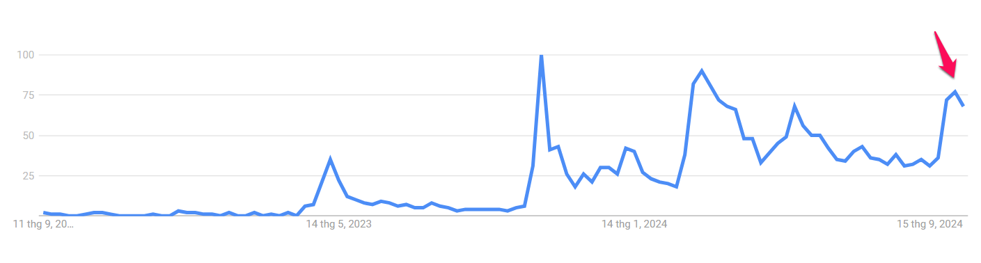 Ondanks de risico’s blijven investeerders toestromen naar meme coins. Google Trend data toont een toename in zoekopdrachten naar “meme coins” in oktober. Op het moment van schrijven heeft de marktkapitalisatie van meme coins $59,3 miljard bereikt, een stijging van 4,9% in de laatste 24 uur, volgens CoinGecko.
