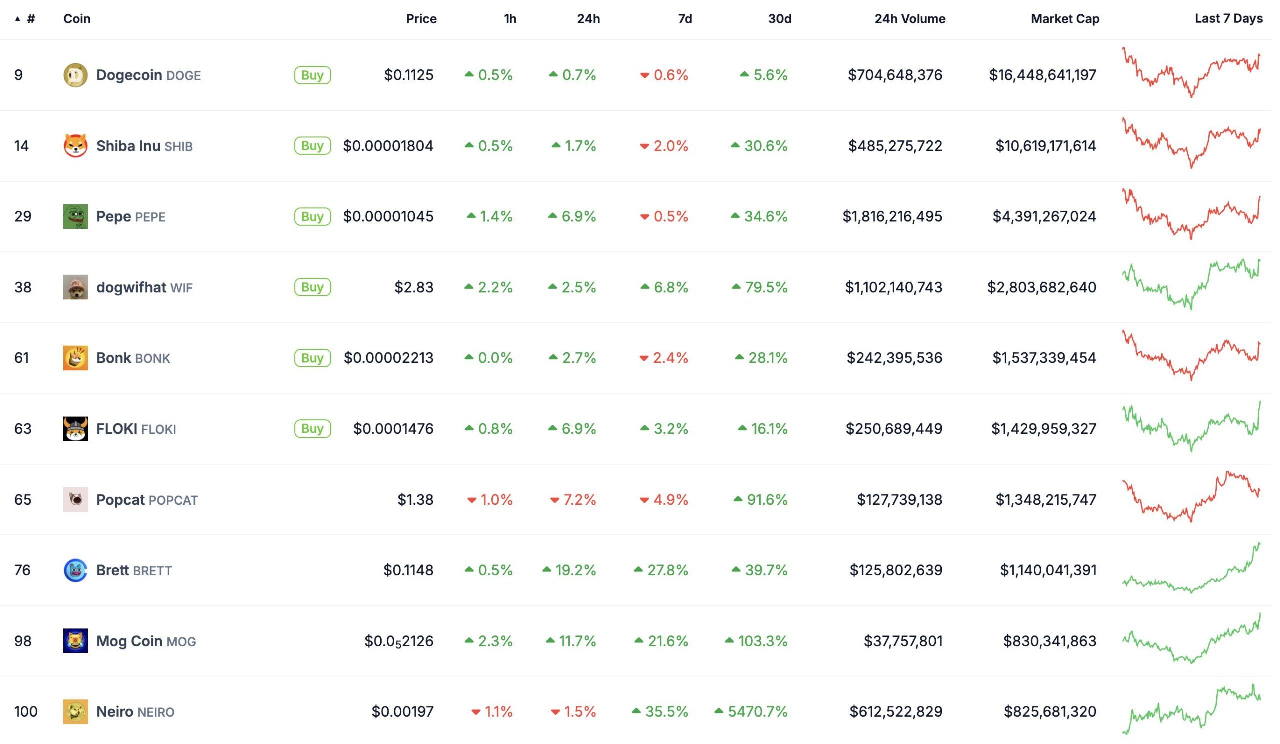 De ranglijsten bevatten traditionele meme coins zoals DOGE, SHIB en PEPE naast een nieuwe generatie meme coins zoals NEIRO, MOG en POPCAT. Daarnaast zijn politiek gethematiseerde meme coins dit jaar een opvallende trend.