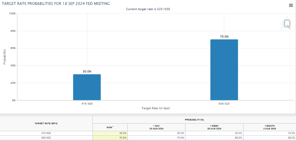 Een ander belangrijk evenement deze maand zal de rentebeslissing van de Federal Reserve op 18 september zijn. In de vorige vergadering besloot het Federal Open Market Committee (FOMC) de rentetarieven ongewijzigd te laten, waarbij beleidsmakers unaniem stemden om het benchmark overnight leentarief tussen 5,25% en 5,50% te houden.