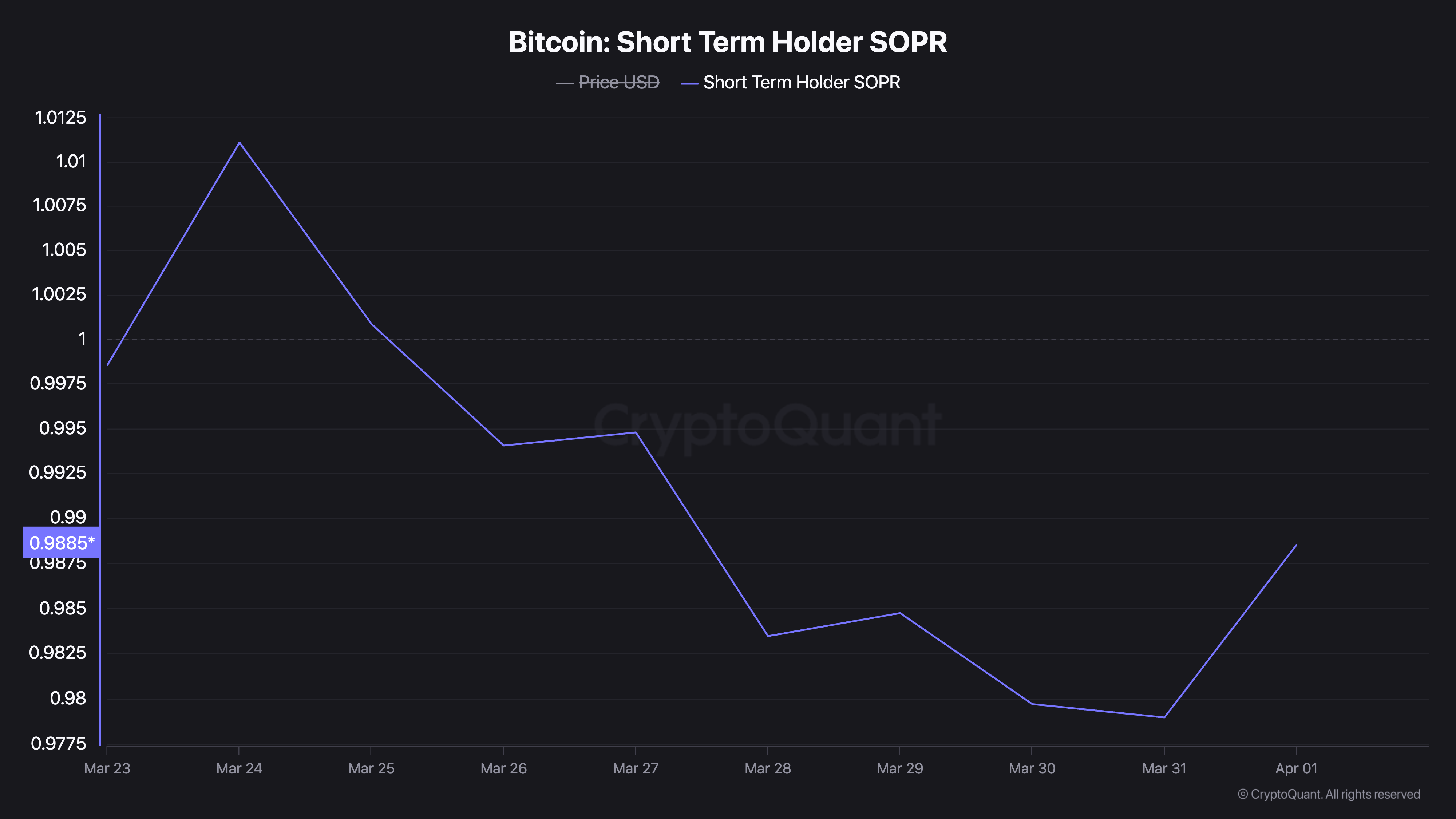 Belangrijke on-chain metrieken, waaronder de Short-Term Holder Spent Output Profit Ratio (STH-SOPR) van de coin, suggereren dat er minder coins worden verkocht op de markt. Deze metriek staat op 0,9 op het moment van schrijven en is gestaag gedaald de afgelopen week.