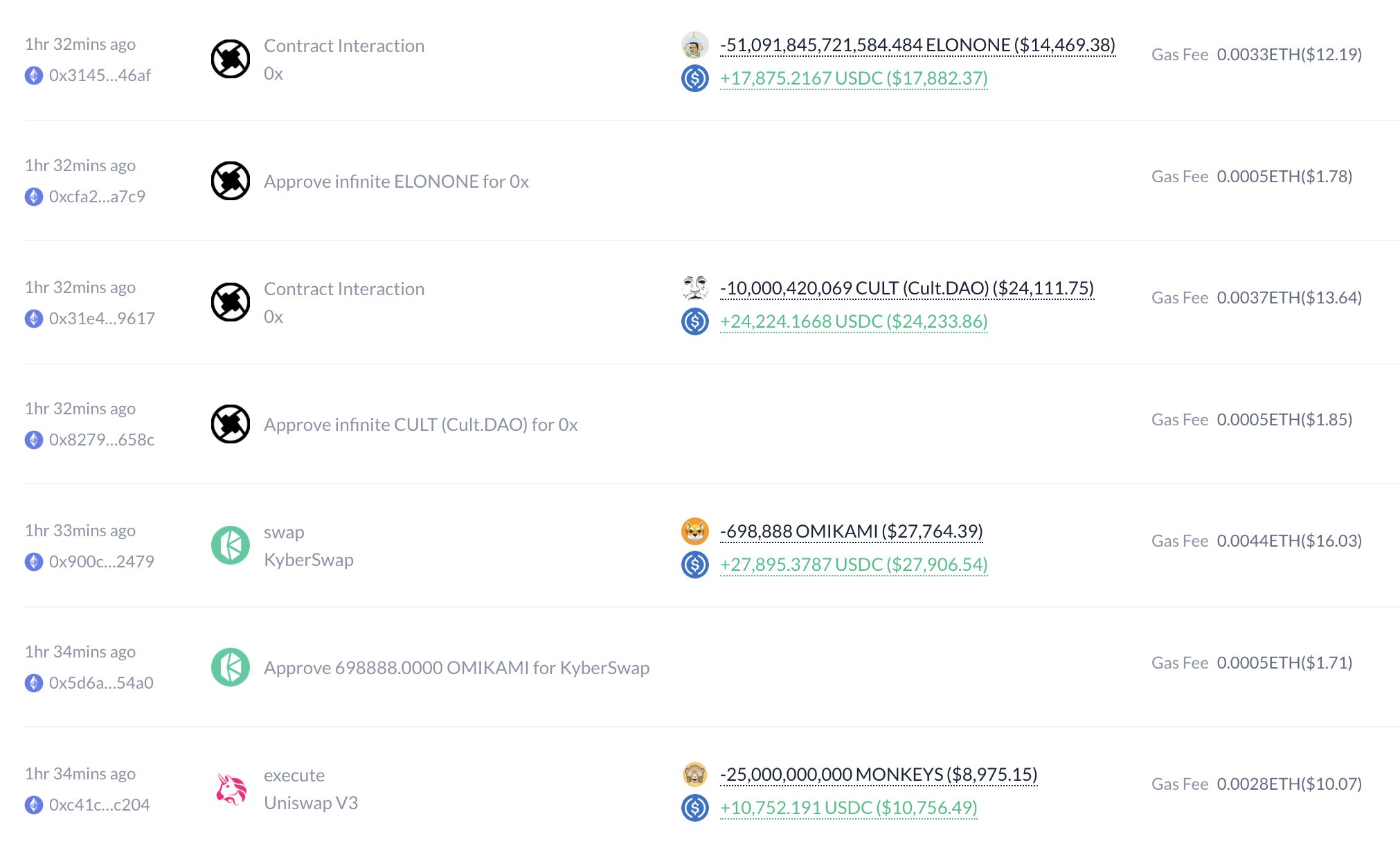 Bijna alle activa werden verkocht voor minder dan 100.000 USDC, maar dit kon betekenen dat er enkele duizenden of vele triljoenen werden verkocht.