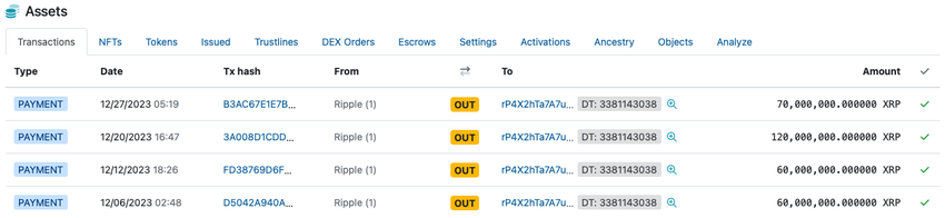 In december heeft Ripple Labs 310 miljoen XRP ($198 miljoen) overgeboekt uit zijn Ripple (1) escrow wallets. De overdracht door Ripple heeft ruwweg 26,34 miljoen XRP in de Wallet achtergelaten, wat tegen de huidige koers van XRP ongeveer $16,7 miljoen waard is.