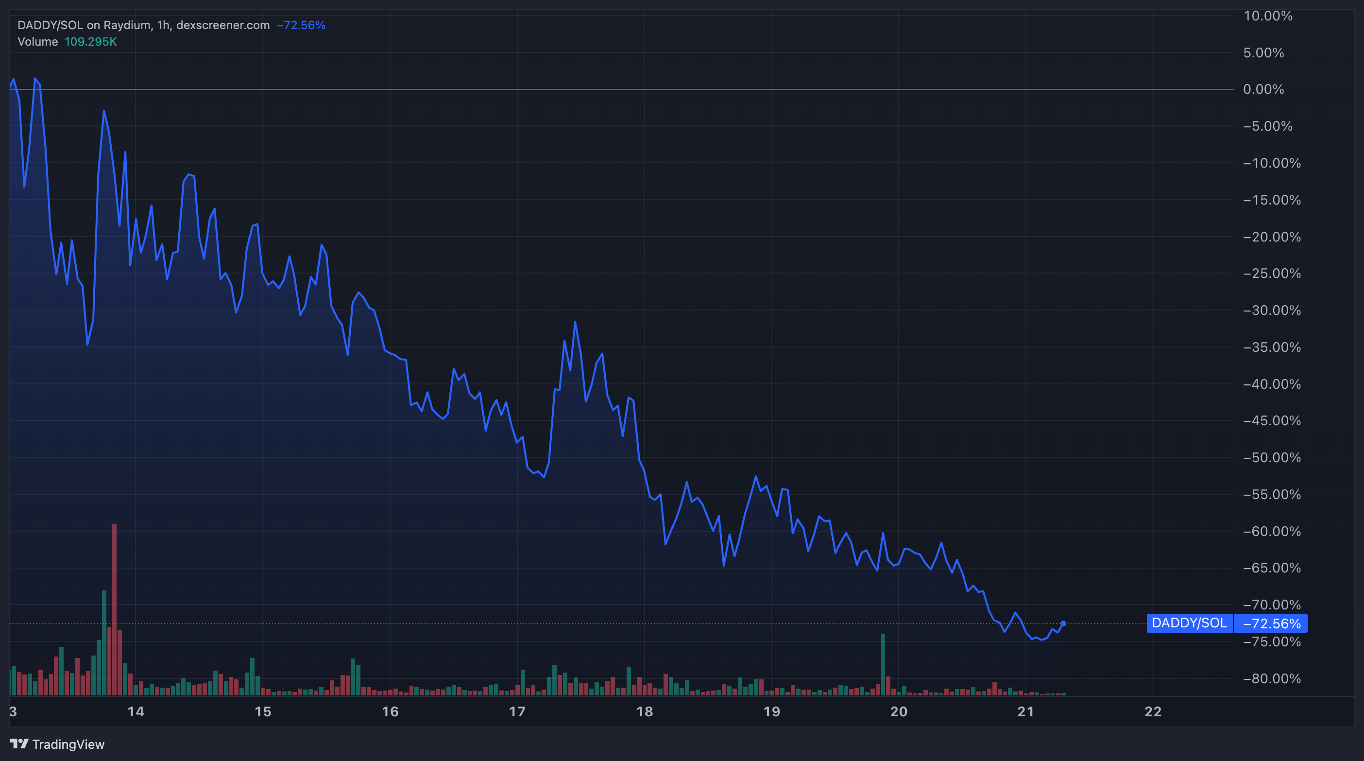 Daddy Tate (DADDY) daalde deze week met 65%. Ondanks Tate’s ambitieuze strategieën om de bruikbaarheid te vergroten – waaronder het transformeren in een non-fungible token (NFT) en de integratie met zijn Real World University – slaagde de coin er niet in om het vertrouwen van investeerders terug te winnen.