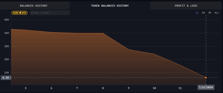 Deze week ging de Duitse regering door met de verkoop van Bitcoins, wat een sterke invloed had op de cryptomarkt. Data van Arkham Intelligence onthulde dat de Duitse Bitcoin-holdings daalden van 42.000 BTC op 5 juli naar 6.000 BTC op dit moment.