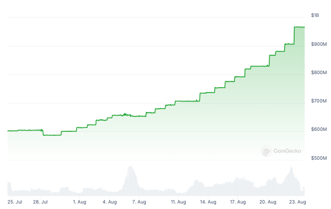 De integratie van PYUSD met Solana is bijzonder transformatief geweest, gebruikmakend van Solana’s snelle en goedkope transacties om een breed gebruikerspubliek aan te trekken. Binnen slechts een maand na zijn Solana-debuut is de voorraad van PYUSD met meer dan 45% gestegen, waardoor de totale circulatie dicht bij $1 miljard komt.