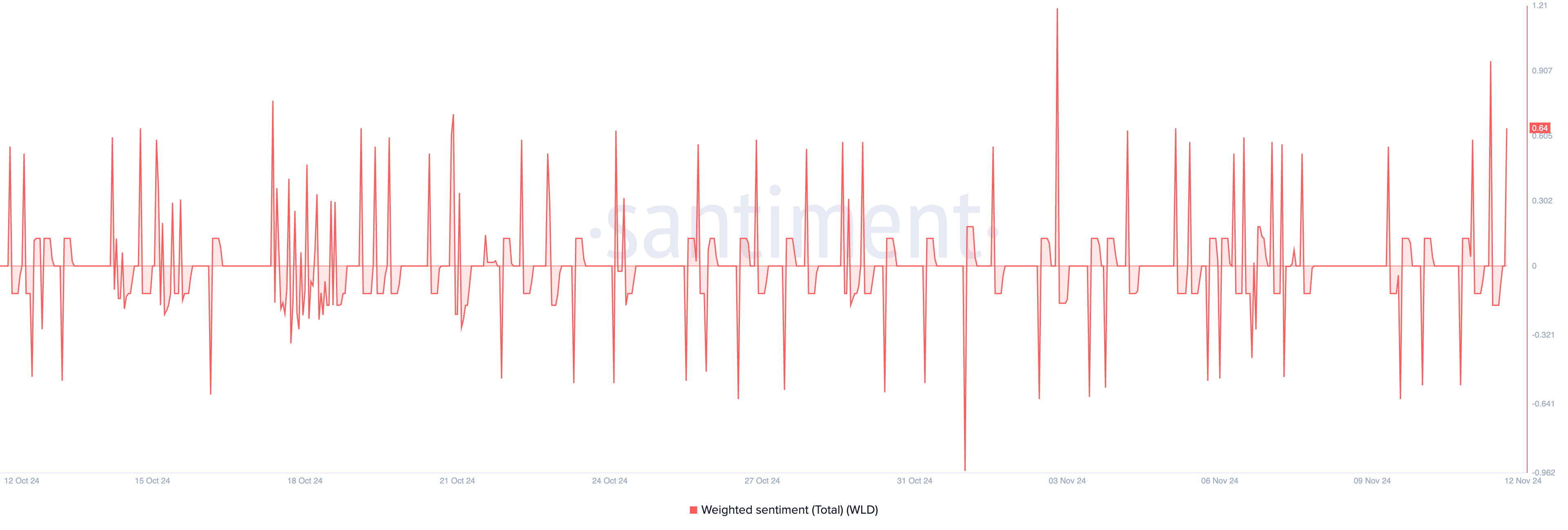 Bovendien is het marktsentiment met betrekking tot WLD momenteel bullish. Santiment’s gegevens tonen zijn gewogen sentiment op 0,64 op het moment van schrijven.