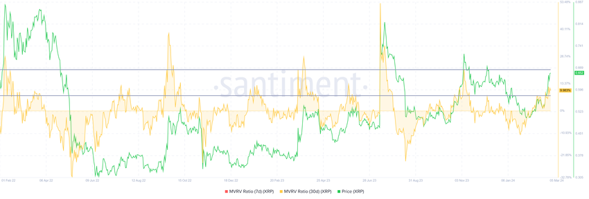 In het geval van Ripple staat de huidige 30-daagse MVRV op 9,9%, wat wijst op een winst van 9,9% voor investeerders die XRP kochten in de afgelopen maand. Dergelijke winsten suggereren dat XRP voldoet aan de markttopvoorwaarden. Bijgevolg is het mogelijk dat deze investeerders hun holdings verkopen om te profiteren van hun winsten, wat mogelijk een sell-off teweegbrengt.