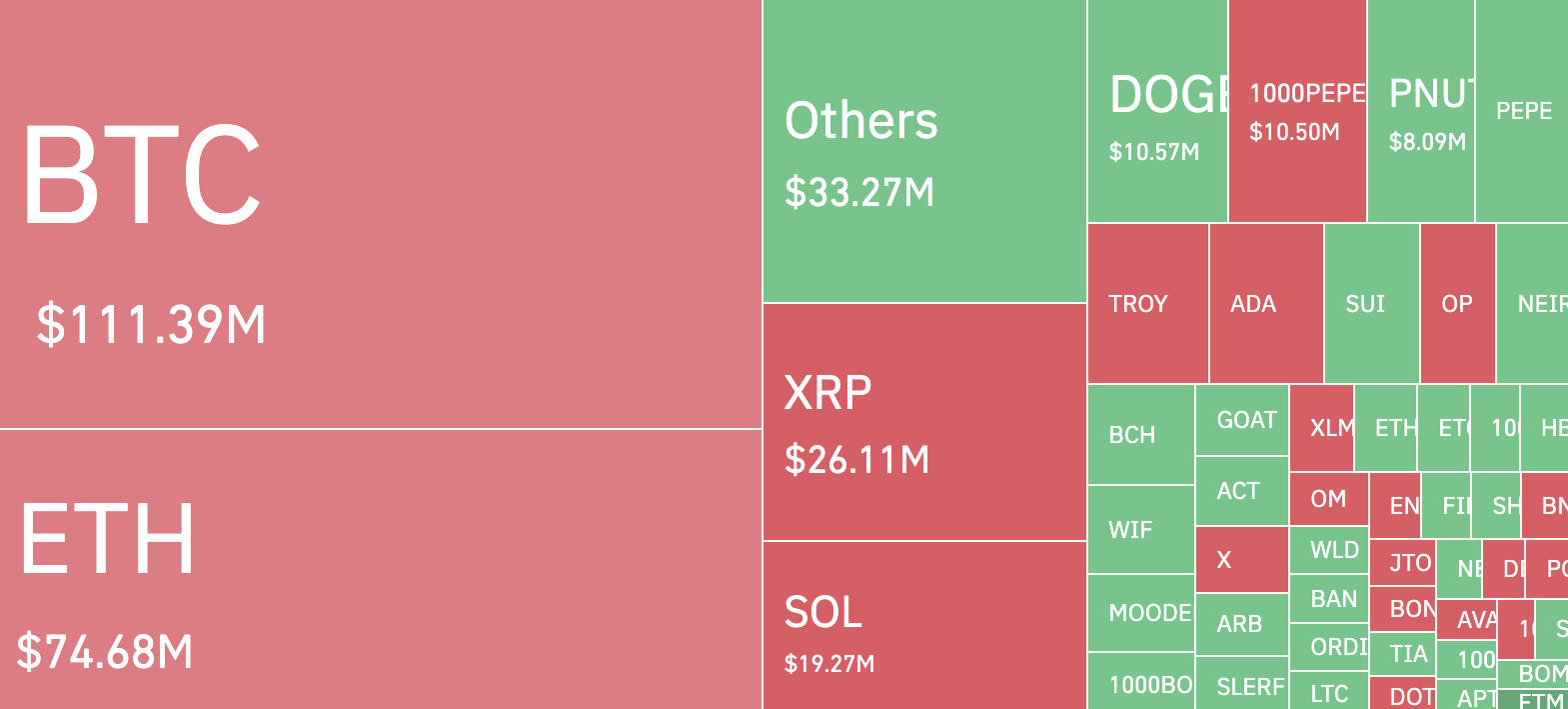 Als gevolg hiervan was het geen verrassing dat de XRP koers steeg en het die van andere cryptocurrencies in de top 10 overtrof. Bovendien leidde de ontwikkeling tot liquidaties ter waarde van $26,11 miljoen in de afgelopen 24 uur.