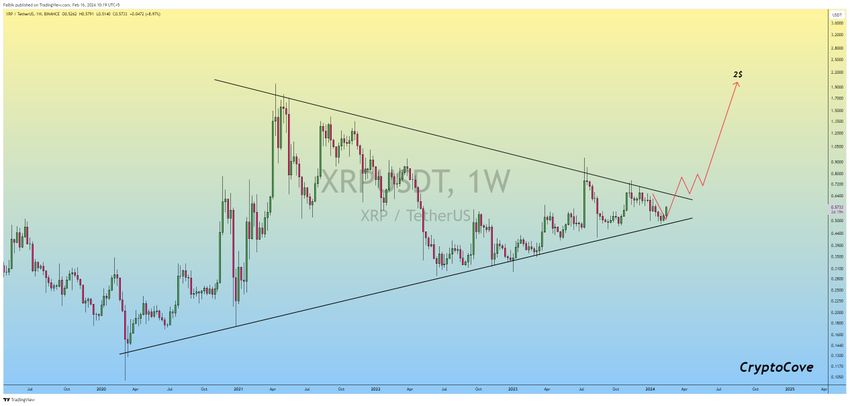CaptainFabik merkte een potentiële breakout van XRP uit een symmetrische driehoek op lange termijn op.