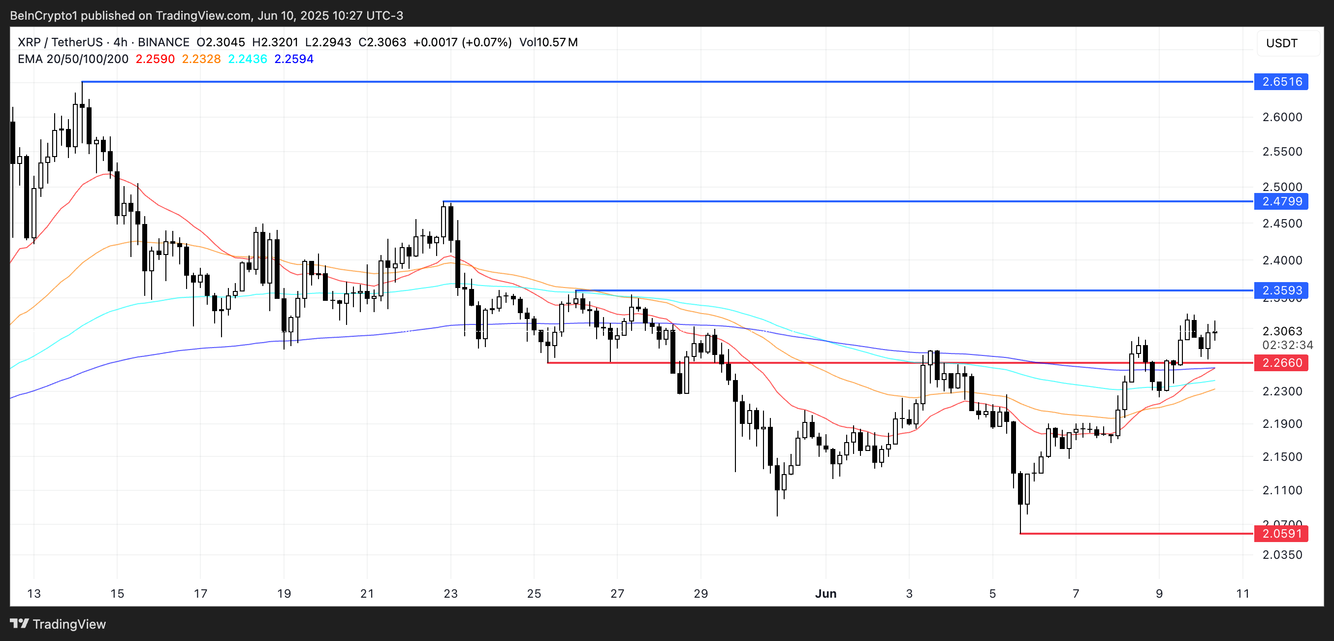 Omgekeerd staat XRP voor een kritisch steunniveau op $2,26.