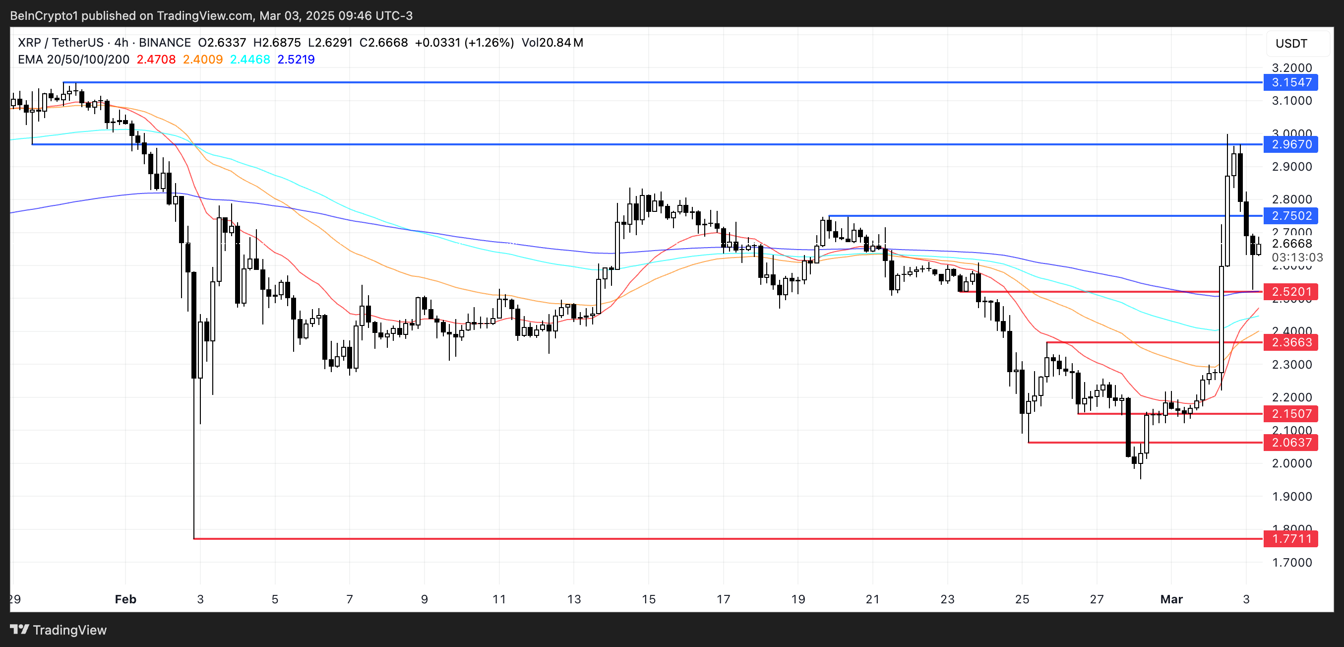 • Belangrijke weerstand op $2,75 en steun op $2,52 zullen de volgende stap van XRP bepalen.