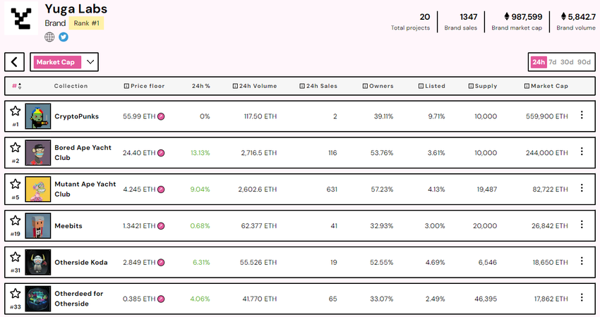 De markt heeft positief gereageerd op deze ontwikkelingen. De NFT-collecties van Yuga Labs, met name BAYC, stijgen in waarde.