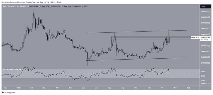 Of de koers van SHIB uit het kanaal breekt of uit het $0,0000100-gebied daalt, kan de richting van de toekomstige trend bepalen.