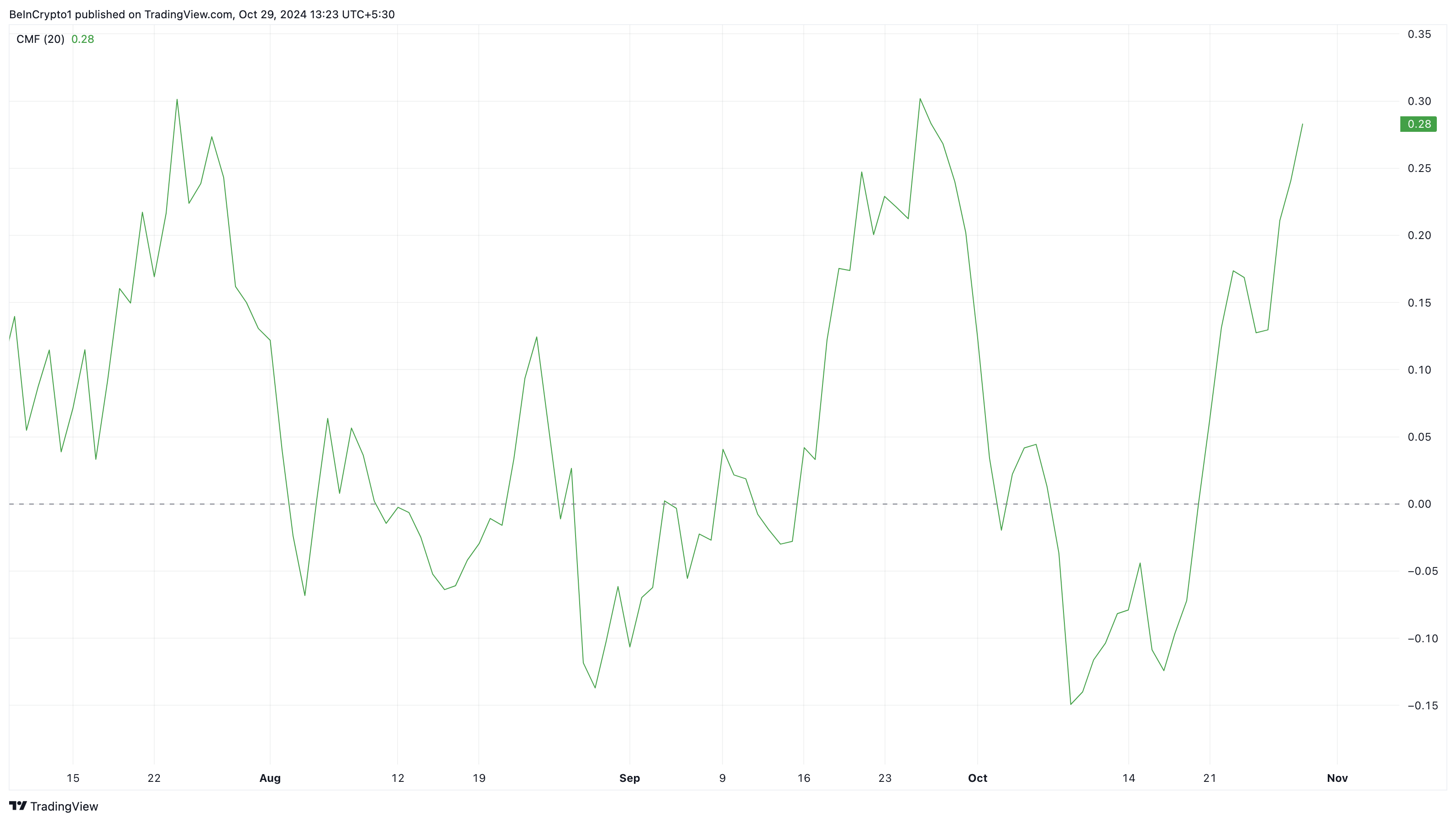 Een belangrijke indicator die waarschuwt voor een terugval voor Solana is de Chaikin Money Flow (CMF), die de koop- en verkoopdruk op een cryptomunt meet.
